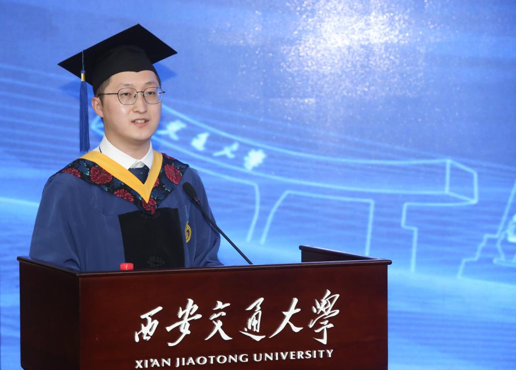 即将赴清华大学攻读硕士学位的本科毕业生代表刘畅分享了她在交大四年的感悟和毕业之际的心情。“学院的照顾与培养、老师们的支持与建议、师长们的关心和帮助逐步影响了每一个人的气质、态度与价值取向,无论身处何地,都将牢记自己是一名‘交小材’,时刻谨遵‘为世界之光’‘为材料之光’的志愿与誓言。”作为首届越杰班毕业学子,她表达了对蒲忠杰、张月娥、王文斌等材料学科优秀校友的感谢与感激之情。