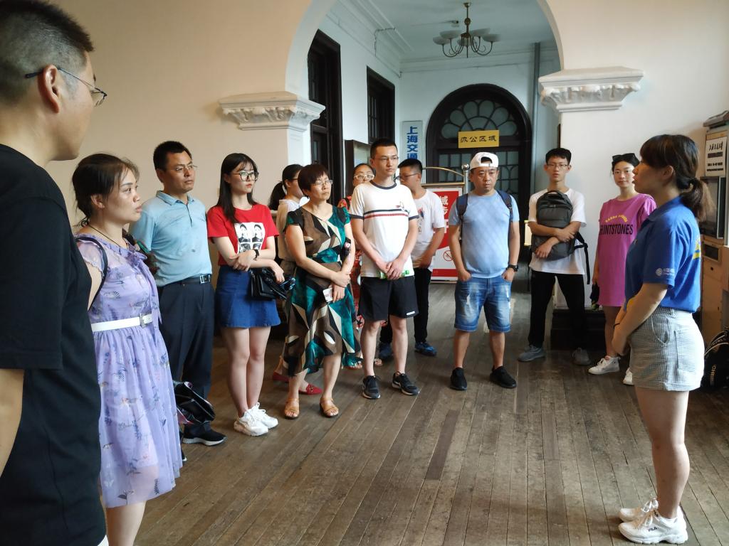 八月的徐汇区,包裹在夏日毫不吝啬的炎热馈赠中,而位于华山路1953号的交通大学徐家汇旧址,则绿树森森,得享一份荫凉。校内随处可见的法国梧桐,展臂高矗,迎接着络绎不绝前来参观的旅客。8月2日,实践团队在参观中了解到,校史馆在暑假期间人手不足,经与负责老师沟通,实践团队决定在校史馆开展宣讲活动。交通大学历史悠久,要让游客们在短短的几分钟内了解交大历史的概况,的确不是件容易的事。对此,实践团队成员召开短会,探讨校史宣讲的分工事宜,查找资料、整理稿件、进行演练,用心准备着次日的宣讲。