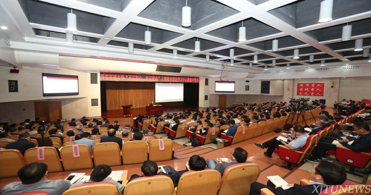 根据《西安交通大学“不忘初心、牢记使命”主题教育领导干部学习研讨方案》要求,进一步深化学习理解,强化交流研讨,对习近平新时代中国特色社会主义思想真正学懂弄通做实,9月21日、22日,西安交通大学举行“不忘初心、牢记使命”主题教育理论学习中心组集中学习。校党委书记张迈曾、校长王树国及党委常委、校院两级党委中心组成员、省级以上教学科研机构领导班子成员、校管干部和主题教育指导组成员等共计400人参加学习。校党委副书记宫辉、赵军武分别主持报告会。