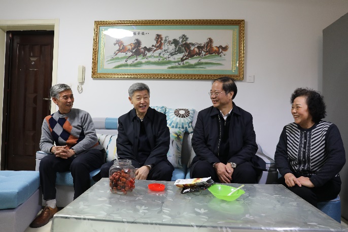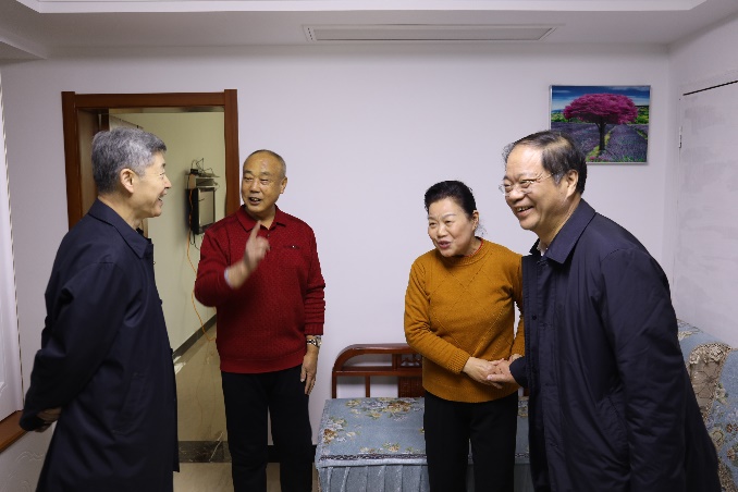 在医学北院,黄宪起一行察看了东一楼加装电梯,来到退休教职工马国重、魏永胜家中,入户了解教师意见。“我身体不好,加装电梯真是解决了我们的大问题”“上下楼方便了,住房面积扩大了”“感谢党,感谢学校,解决的都是关系我们切身利益的实事”……看着整洁的房间,老人们的笑脸,黄宪起频频点头。他表示,加装电梯是改善民生问题的一个重要举措,切实提高了教职工的生活质量,给大家办了好事、实事,可以看出,老同志对学校的感谢之情溢于言表。张迈曾表示,只要能够给教职工解决的,学校一定尽力解决。他叮嘱老同志们多注意身体,给学校提意见建议,同时珍惜这来之不易的环境,共同维护好学校发展。