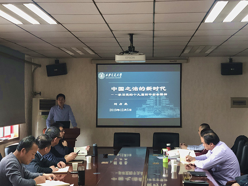 12月5日,后勤保障部党委召开了十九届四中全会精神解读学习及“不忘初心 牢记使命”警示教育会,邀请马克思主义学院副教授、博士生导师刘占虎作题为“中国之治的新时代——学习党的十九届四中全会精神”的宣讲报告。后勤保障部全体校管干部,党委委员,纪委委员参加会议。后勤保障部党委书记张西亚同志主持本次会议。