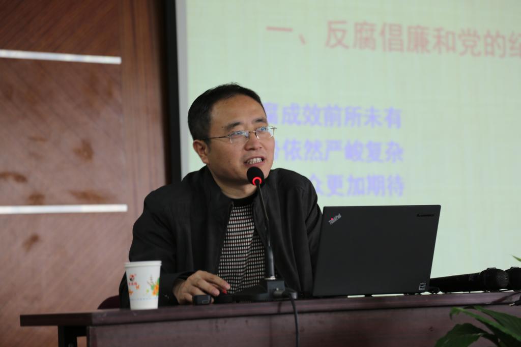 随后,校纪委陈红副书记以“把纪律和规矩挺在前面”为主题,结合目前中央反腐工作的实例,详细分析了反腐倡廉和党的纪律的关系、党的纪律和规矩的内涵、以及如何把纪律和规矩挺在前面三方面具体内容,重申了《高等学校所属企业领导人员廉洁从业若干规定》中对行为规范的“35不得”要求,指出高等学校所属企业领导人员更应在实际工作中坚定不移地坚持做到“守纪律、讲规矩”,全面贯彻落实“三重一大”决策制度,严格按照相关法律法规办事。陈红副书记还对纪检工作提出要求,纪检干部要切实担负起从严治党、强化干部教育管理的主体责任和监督责任。要适应全面从严治党要求,把纪律挺起来、规矩严起来,严格执行政治纪律和政治规矩、组织纪律。