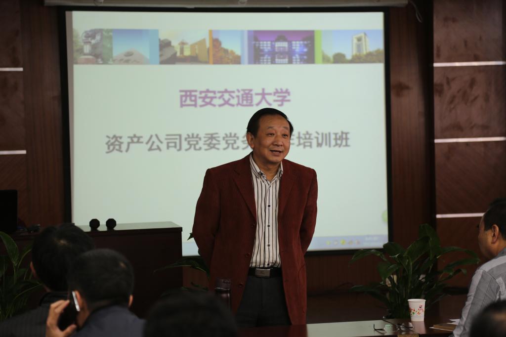 由资产公司党委和西安交通大学党校共同举办的资产公司党务工作培训班于2015年10月14日在举行。培训由资产公司党委副书记程鹏迅和交通大学党校副校长聂刚共同主持,15个基层党支部书记、支委委员,及控股公司董事长、总经理、财务负责人共计80余人参加了此次培训。培训分专题报告、“五好支部”创建经验交流学习和分组讨论环节。