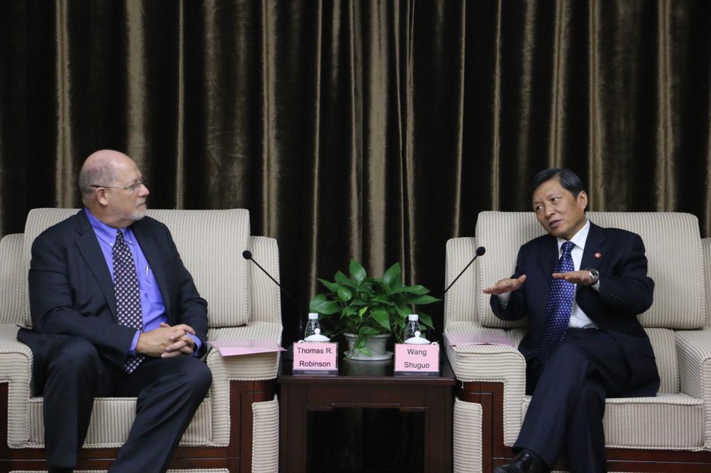 AACSB国际主席兼首席执行官Thomas R. Robinson表示非常荣幸受邀到西安交大访问,这是他第一次来古城西安,感谢西安交大的热情会见与周到的安排。Thomas介绍了AACSB国际强调在全球合作、创新、参与及影响力等方面的发展。2016年AACSB国际将庆祝成立100周年,作为国际知名度最高的一项国际商学认证,AACSB国际也在不断的自我发展与创新,在2013年,发布了最新的认证标准。Thomas 还特别感谢管理学院对10月11日-13日在西安举办的AACSB2015亚太年会给予的支持及帮助。