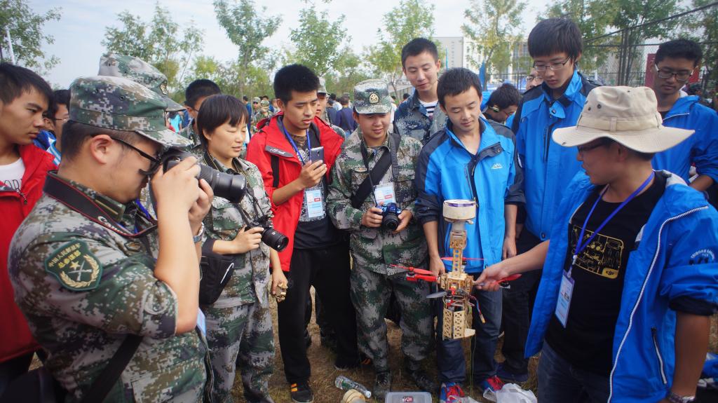 “对地侦察”项目由操作手操控自行设计制作的便携式固定翼飞机,对未知范围内的未知目标进行侦察活动,要求根据所拍摄的照片或者识别的图像,分辨出目标物的内容,在侦察准确的内容基础上,以用时更短者为胜。西安交大参加该项目的飞机采用了复合材料设计、快速折叠展开机构以及快速图像捕捉系统,一经亮相便成为全场瞩目的焦点。凭借飞机优秀的飞行性能和默契的团队配合,夏博阳机组在参赛的120组选手中脱颖而出,以1分35秒的成绩勇夺该项目金牌。这也是继2009年、2013年之后第三次获得该项比赛的个人冠军。