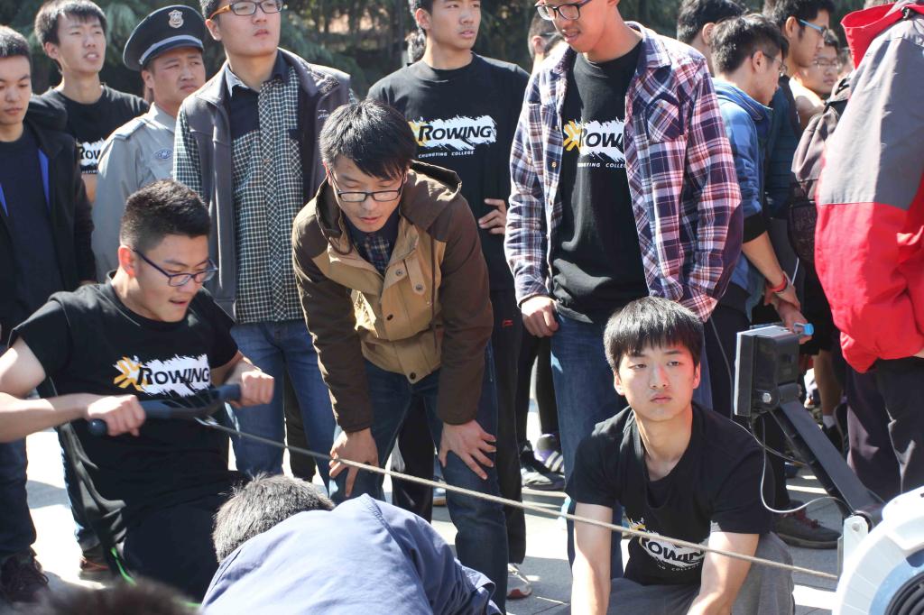 10月11日上午,“灞河竞渡·2015年秋季赛艇挑战赛”之划船器友谊赛在四大发明广场精彩开战,来自八个书院和教职工的26支参赛队伍激烈角逐,尽显赛艇运动的独特魅力。校党委副书记宫辉以及各职能部处、书院领导等来到现场观摩比赛。