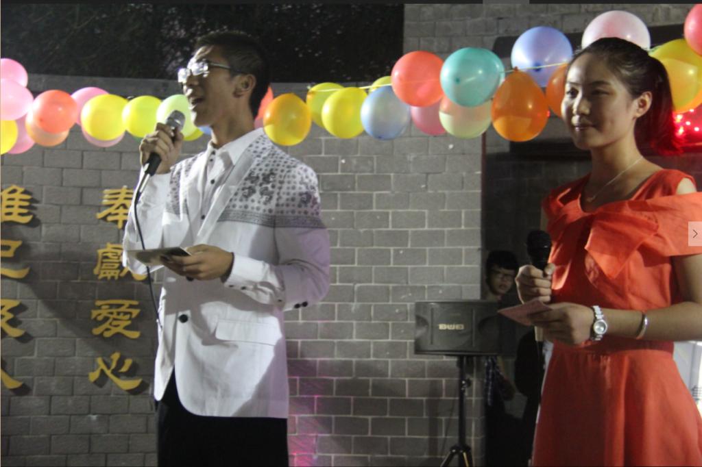 杨皓博、刘浩男两位同学渺远的歌声伴着荧光棒升起,正式宣告了冷餐会的开始。徐慧老师致辞问候同学们,她表示冷餐会的目的就是为了给同学们一个展示才艺的平台并且让来自五湖四海的同学们值此佳节能更好地融入集体,融入大学生活,感受家的温暖,老师情真意切的话语里寄予了对同学们的关怀与希冀。梁辉老师也借“十五的月亮十六圆”之意,表明所有老师共同的心迹:为离家万里的同学们在双节之际送来温暖与关怀。