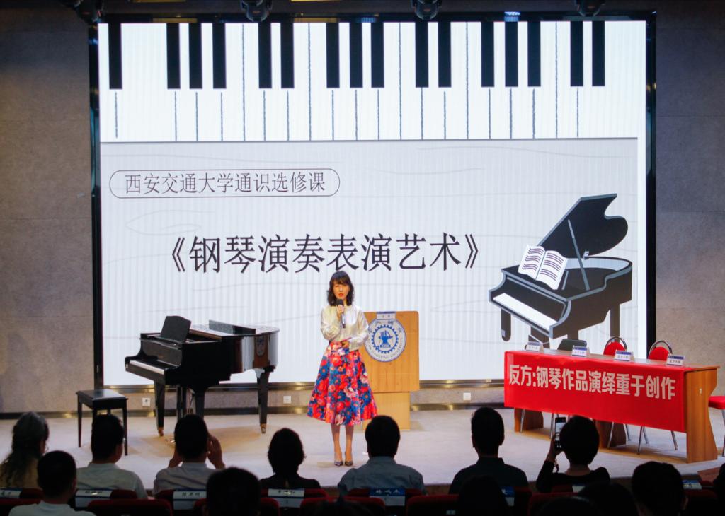 5月21日,在西安交通大学通识课程“钢琴演奏表演艺术”辩论赛的赛场上,来自不同专业的同学分坐两侧,就“钢琴作品是创作重于演绎,还是演绎重于创作”这一辩题展开激烈辩论。该比赛作为西安交通大学首届“国运杯”系列辩论赛之一,是一场学科交叉、跨界融合、思维创新的课堂探索与教学改革,旨在提升西安交大学子的思辨思维和人文素养。