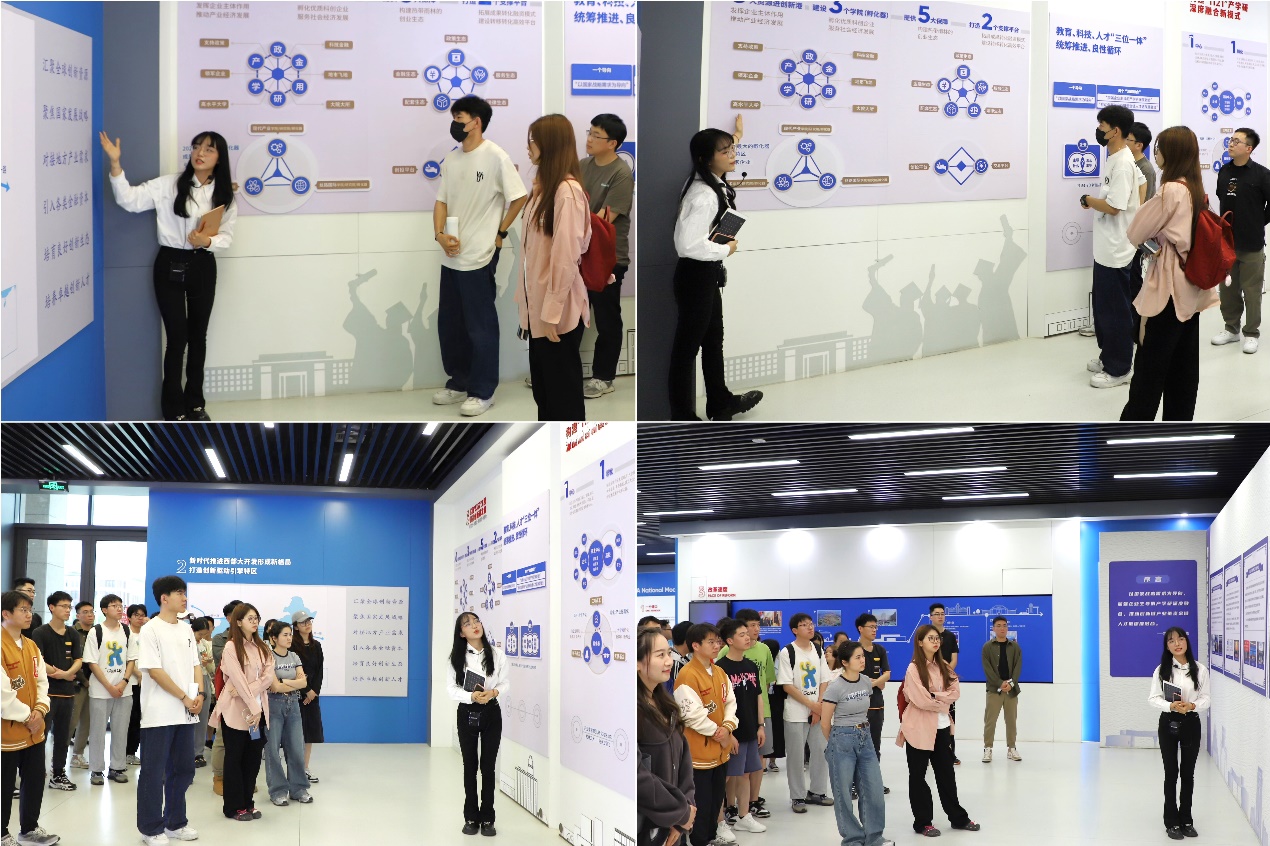 在参观数字展厅过程中,展厅讲解员、学院兼职辅导员曹瑞为同学们进行了细致深入地讲解,带领同学们充分了解了交大西迁的校史校情以及创新港的建设理念、历史使命、发展目标,同时也对老一辈西迁人“向科学进军、建设大西北”的初心以及“听党指挥跟党走”的西迁精神有了更深刻的体会。曹瑞谈到,人居学子在乡村振兴、规划建设、生态环保等领域大有可为,大家要继续传承弘扬西迁精神,结合专业所学主动融入校地企一体联动、产学研深度融合的氛围中,在青春赛道上跑出新时代人居青年的更好成绩。