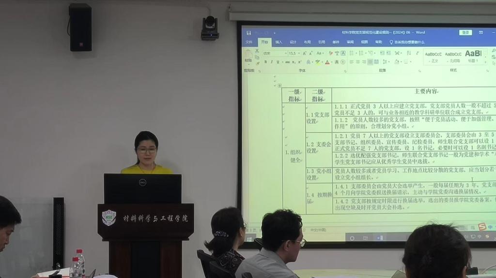 高宏带领与会人员共同学习《关于落实学校2024年全面从严治党重点工作的通知》,具体部署今年学院党委全面从严治党工作,强调全院各级党组织要对照文件要求,在政治引领、理论学习、党员队伍建设等方面查漏补缺,推动全面从严治党向纵深发展。党委秘书吴文媛介绍《材料学院党支部规范化建设细则》,为进一步推进党支部标准化规范化建设提供了明确条例和落实标准。