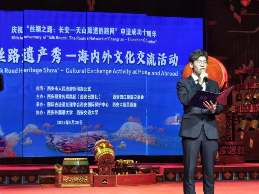 2024年6月是“丝绸之路:长安—天山廊道的路网”申遗成功十周年。为庆祝这一具有历史意义的重要时刻,6月20日,“丝路遗产秀”——海内外文化交流活动在西安大唐芙蓉园举行。西安交大就创中心老师于悦洋、“丝路青年”文遗国际组织人才孵化营中外营员以及实习生代表20人受邀参加活动。