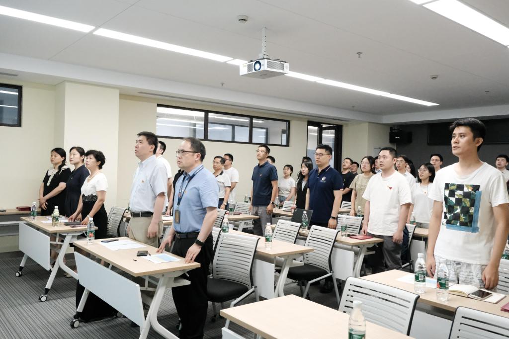 会议伊始,全体起立奏唱《国歌》,由学院党委书记董新宇同志郑重宣读了《关于表彰优秀共产党员、“铭纪于心 守纪于行”主题征文比赛获奖者的决定》。