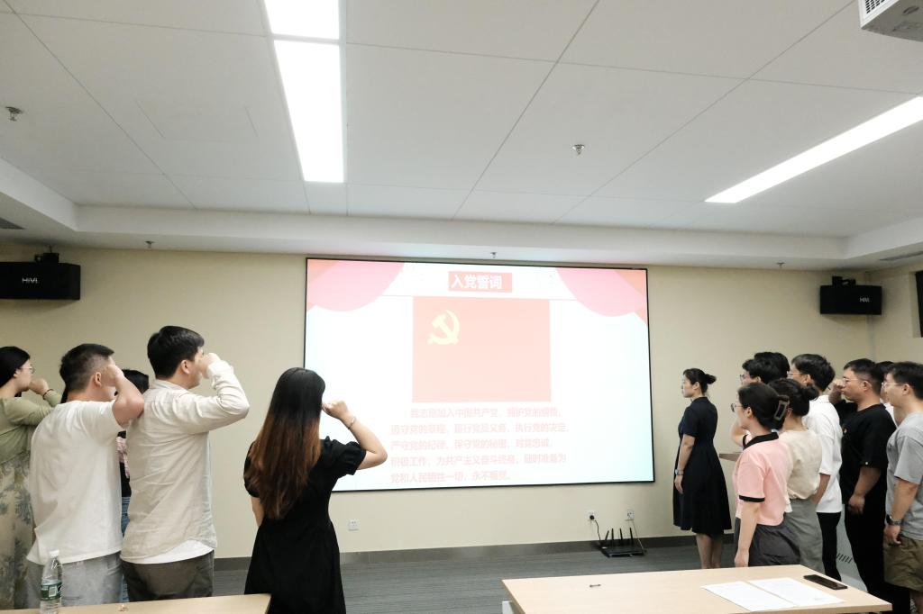随后,党委副书记马瑾同志带领全体新党员宣誓,“我志愿加入中国共产党,拥护党的纲领,遵守党的章程……”,全体党员共同举起右手、面对党旗、慷慨激昂、庄严宣誓。