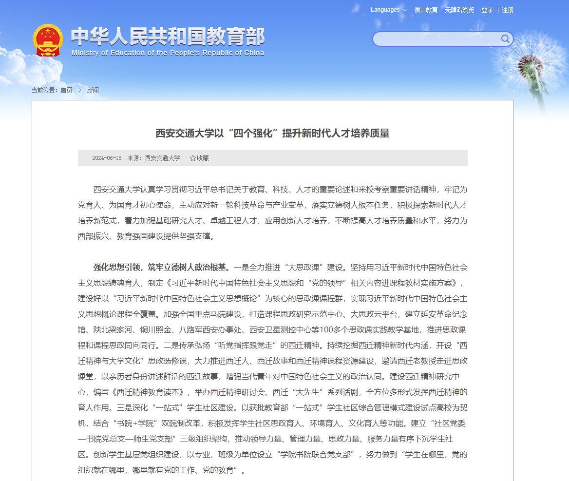 报道链接:http://www.moe.gov.cn/jyb_xwfb/s6192/s133/s215/202406/t20240618_1136299.html