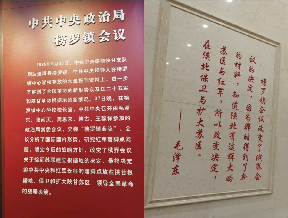 在榜罗镇会议展陈馆,师生一致表示对榜罗镇会议的历史背景、决策过程及深远影响有了更加深刻的认识,学生张恩硕参观表示:“新时代的青年一定要铭记历史,继承和发扬革命精神,为国家的繁荣发展贡献力量。”