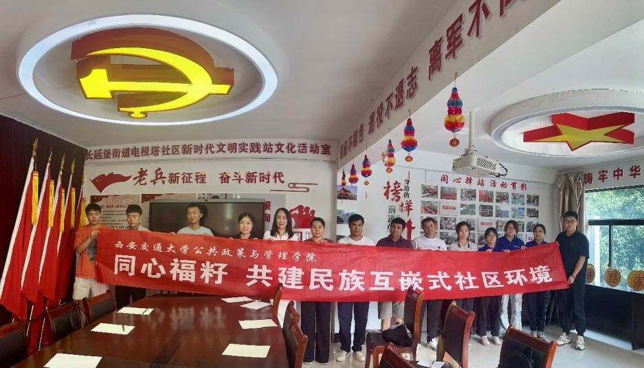 近日,公管学院党委副书记马瑾、社保系副教授张泽滈带领劳保2201班本科生前往西安市雁塔区电视塔社区开展调研,了解民族互嵌式社区建设现状与经验。西安市雁塔区长延堡街道电视塔社区党委书记王晓龙、社区党委副书记张悦倩,雁塔分局高亮、郭翔、胡海及社区群众代表参与调研。