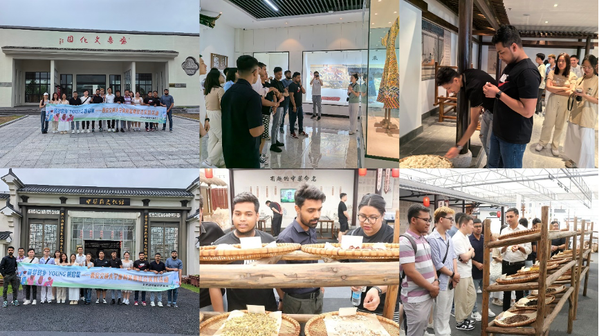 7月10日,国际学生们实地参观了中国中药材之乡—射阳县洋马镇的鹤乡菊海园区中医药文化馆,参观各种草药标本,辨识中药材,观摩香囊制作现场, 品尝菊花草药茶,同学们亲身体验中医药文化在人们日常生活中的实用性,感叹中药材的神奇。随后,前往蚕桑文化园参观,探寻中国蚕桑丝绸文化的历史和发展,感受中华民族的智慧和匠心精神。最后,分别参观了农耕文化博物馆和四季果香农业产业园,国际学生们认识了中国古今农具,了解了中国农耕文化,体验了江苏民居习俗,观察了果蔬博览园里的植物水果生长情况,亲手种植向日葵,见证了新中国乡村经济的繁荣景象。