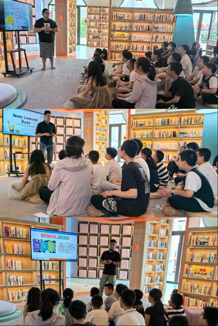 7月12日,国际学生们走进北京大学射阳拉曼研究中心,参观半导体实验室,学习了许多前沿科技知识;在中科纽克实地参观装配区车间,与工作人员深入交流,探讨生产工艺、科技研发、市场前景等。下午,国际学生们深入射阳县义工联合会课堂,与20余名公益小天使进行交流互动。公益小天使们跟随国际学生们一起学习阿拉伯语,了解也门、汤加和孟加拉国的地理文化知识。