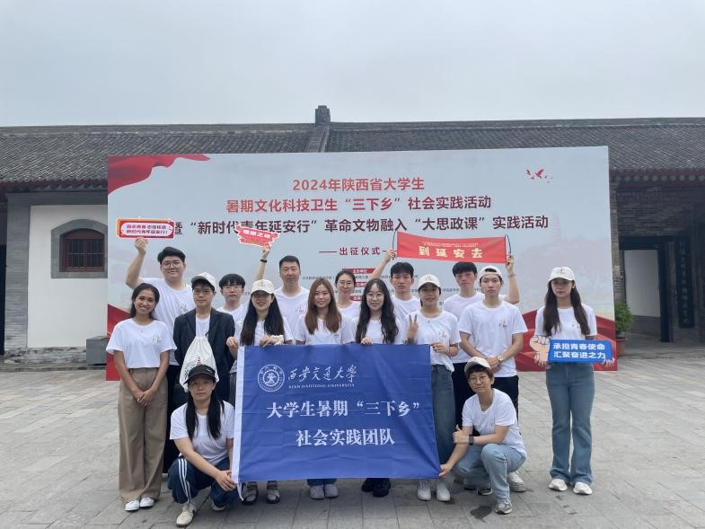 为深入贯彻落实党的二十大精神和习近平总书记关于“大思政课”、革命文物工作重要指示批示精神,7月16日—21日,西安交通大学“心向延安,同心筑梦”实践团队参与第六批新时代青年延安行革命文物融入“大思政课”社会实践活动。马克思主义学院、国际教育学院十三名本硕博学生,在李宗琦、郝一博、周蒙三位指导老师的带领下,历时六天,途经泾阳、富平、黄陵、洛川、甘泉等地,沿着八十多年前抗战时期爱国进步青年北上的道路抵达革命圣地延安。