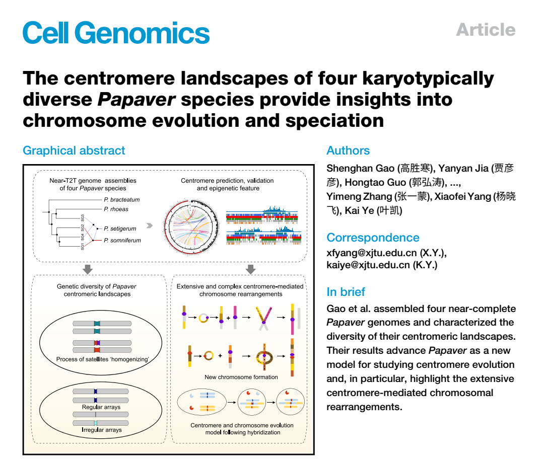 西安交通大学叶凯教授领导的信息与生物医学交叉团队,开发了针对基因组超复杂区域的计算方案,成功绘制了四种罂粟属物种的着丝粒序列图谱,包括大红罂粟、虞美人、鸦片罂粟和渥美罂粟,它们各自拥有独特的核型特征。