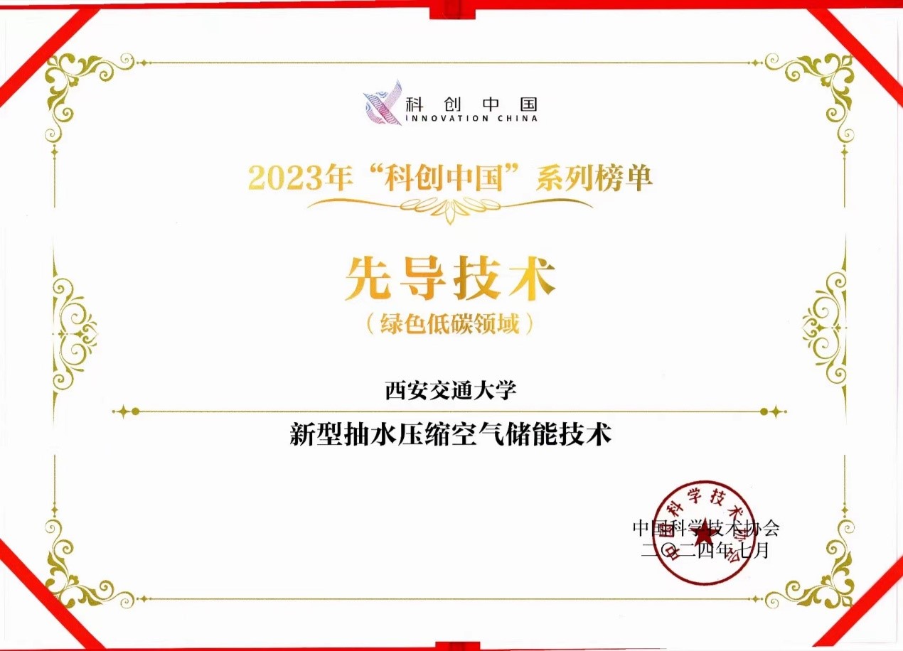 西安交大“新型抽水压缩空气储能技术”入选2023年“科创中国”先导技术榜