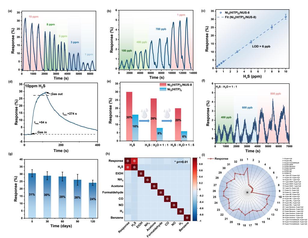 基于Ni3(HITP)2/NUS-8传感器的气体室温传感性能