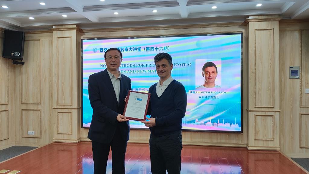 Artem R. Oganov院士还做客了“西交·海外名家大讲堂”,为交大师生作《Novel methods for predicting exotic compounds and new materials》的学术报告。本期“西交·海外名家大讲堂”由材料学院、国际处共同主办,材料学院院长丁向东教授主持报告会。