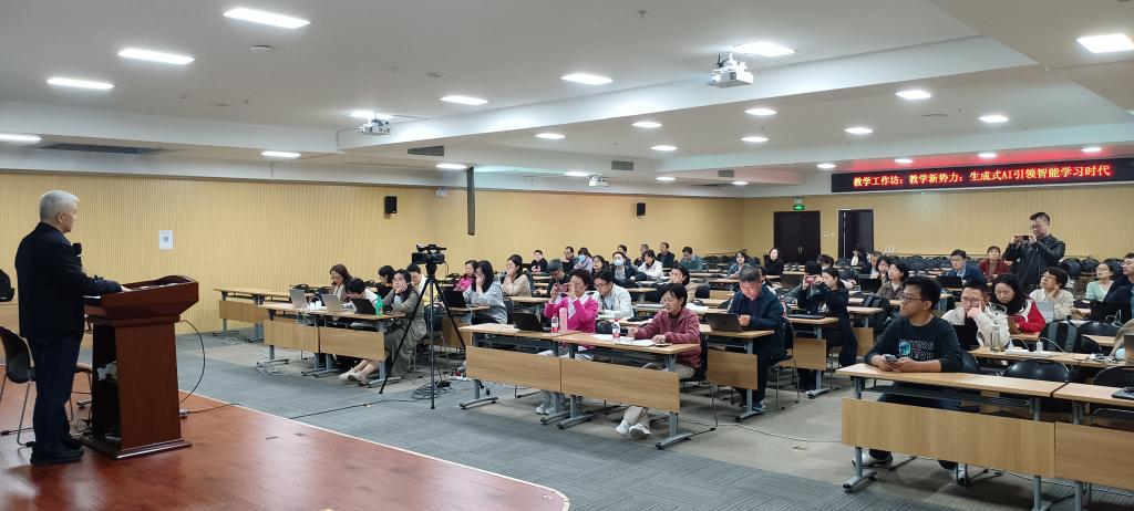 为提升教师数字素养,促进AI赋能教学。近日,教师教学发展中心邀请华南师范大学赖国雄老师来校,围绕“教学新势力:生成式人工智能引领智能学习时代”主题作教学工作坊。全校172位教师线上或线下参加。活动由教师教学发展中心主任徐忠锋教授主持。