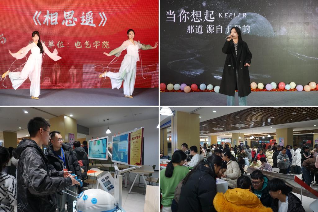 “科技感”携手“文艺范”,燃动全场:投壶、飞花令、新年拓印、国画创作、书写春联贺卡、制作糖葫芦等活动让参与者沉浸在传统文化的魅力中。舞蹈表演、乒乓球赛、保龄球挑战、你比划我猜、魔术表演、调香体验、折纸艺术以及融合了机器人竞赛与创新趣味的游戏,将传统与现代创意巧妙融合。“雅射春秋”“逛三园”“表情桌游”“蛇来运转”等趣味小游戏,更是增添了游园会的欢乐气氛。AED急救知识普及、口腔内窥镜成像、菌斑实验、涂氟实验、腹腔镜模拟体验等项目,让同学们在游玩中学习了知识。特色电路焊接游戏、特斯拉线圈展示、CAD写字机器人演示及静电球体验等活动,也为同学们带来了富有科技感的体验。