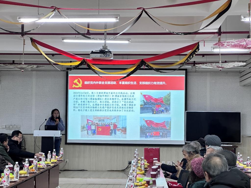 张翠翠老师代表教工党支部向大家介绍了学院党总支和党支部委员会构成,并分享了2024年度支部开展的主要活动。
