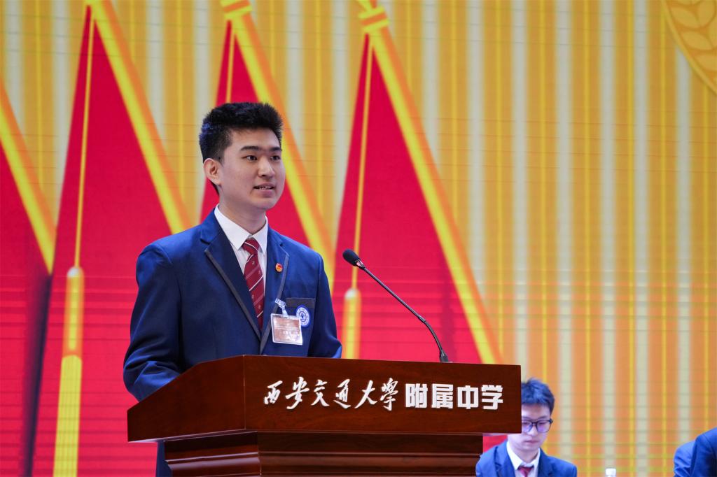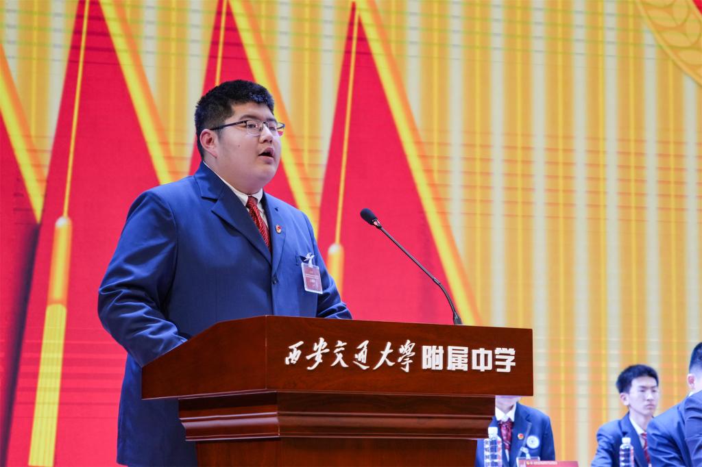 訾艳阳在讲话中对大会召开表示热烈祝贺,向长期以来关心支持交大附中青年工作的上级团组织表示衷心感谢。他指出,附中青年是校园中最具朝气、最具创造力的群体,在学校发展进程中既是见证者,也是积极的参与者、建设者。他特别赞扬了同学们在会议提案环节展现出的责任担当意识。訾艳阳强调,身处伟大时代,附中青年要将西迁精神发扬光大,将个人理想融入国家发展大局,以家国情怀参与校园治理,用青春智慧推动学校改革发展。