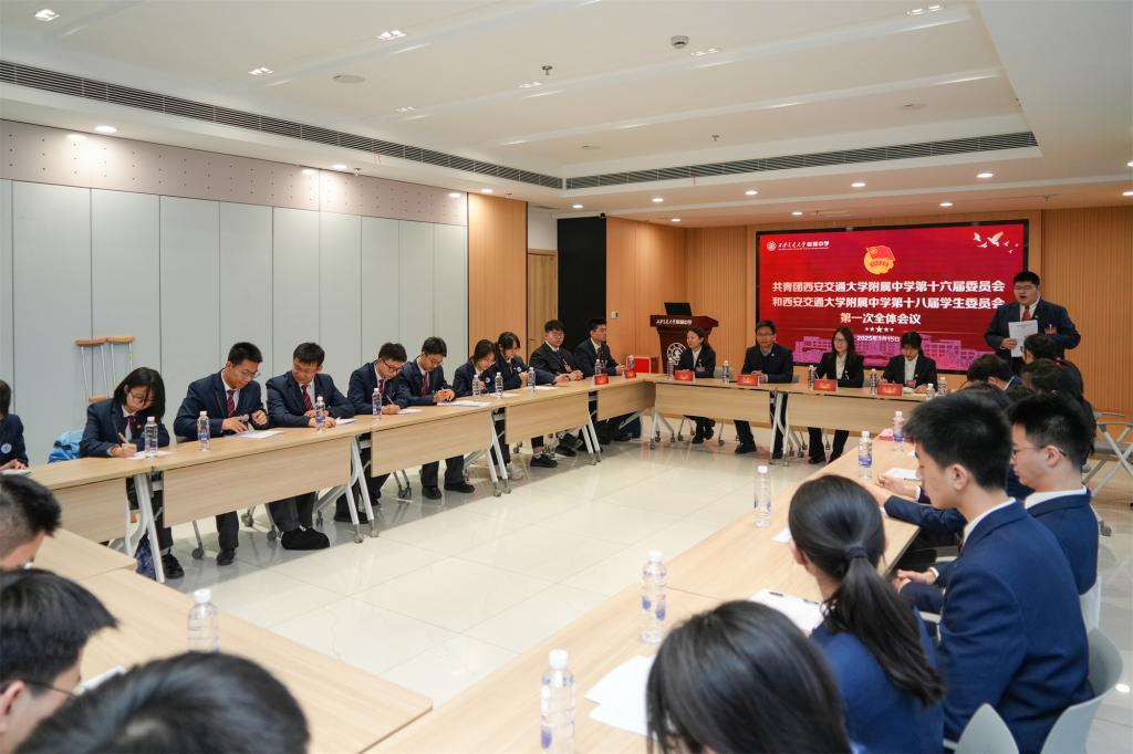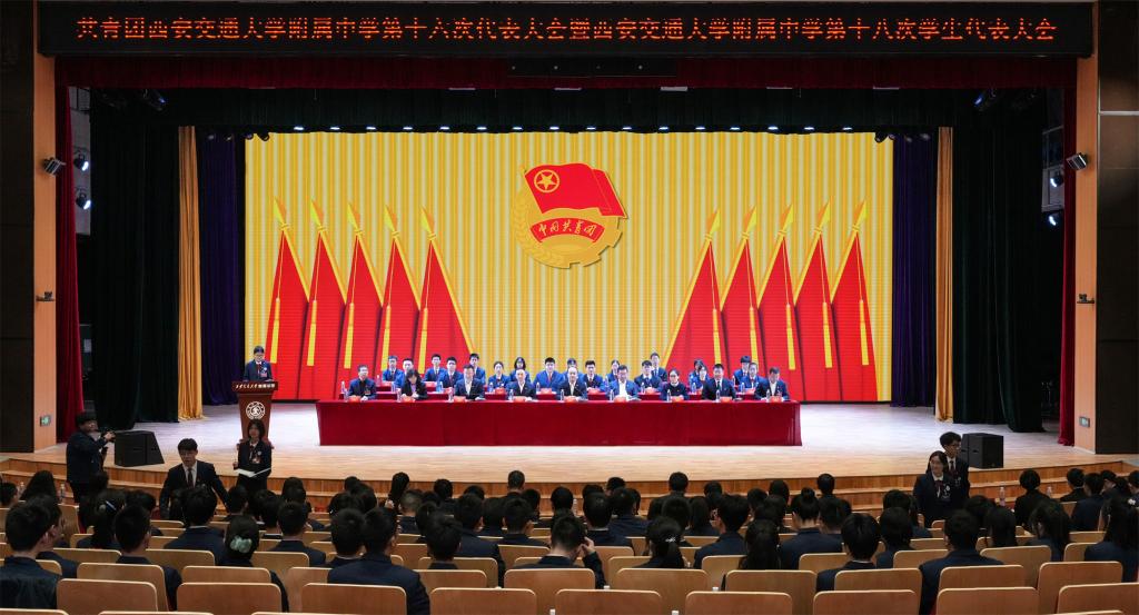 3月15日,共青团西安交通大学附属中学第十六次代表大会暨西安交通大学附属中学第十八次学生代表大会在曲江校区未来报告厅隆重召开。共青团陕西省委书记徐永胜,西安交通大学附属中学党总支书记、校长訾艳阳,共青团陕西省委基层组织建设部部长李红斌,共青团西安市委学少部部长、交大附中高2002届校友李尤,西安交通大学团委书记李利波、副书记李开贤,陕西省学生联合会主席常凇瀚出席会议。兄弟学校学生代表,附中副校长及各处室负责人、党支部代表、177名正式代表参加会议。