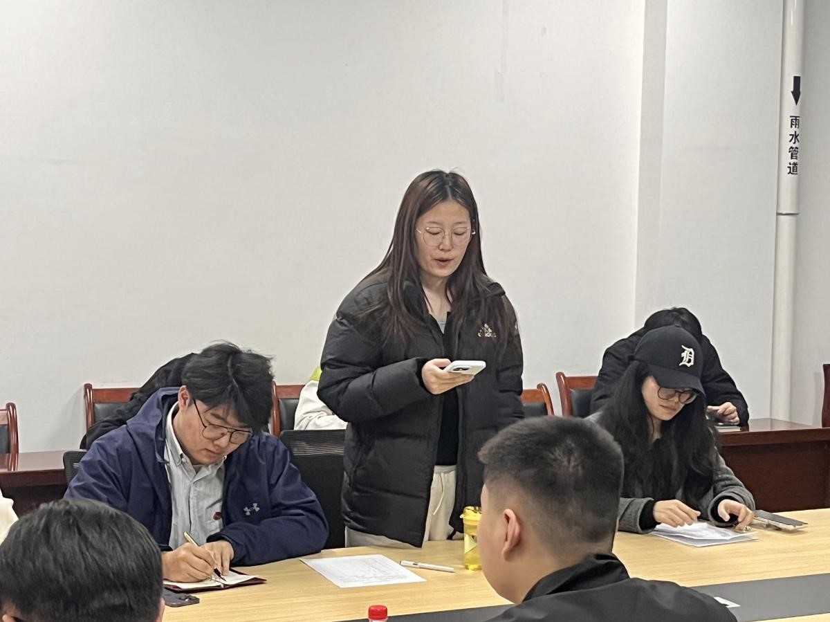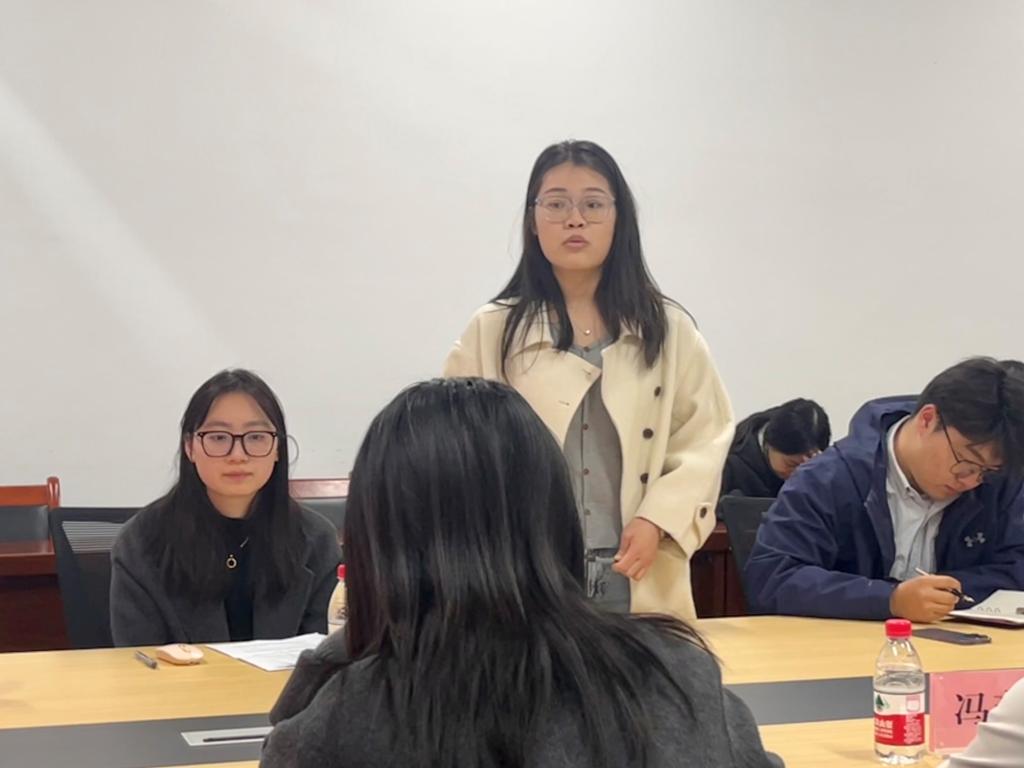 张玺晗在致辞中从过去一年的学生工作出发,肯定了硕4061团支部集体及成员在学校、学院、年级等各项事务和大型活动中做出了突出贡献,指出了此次团支部专题组织生活会暨年度民主评议会的背景与重要性,强调了此次会议对学院基层团组织召开组织生活会的示范意义,同时期待支部能够以此为契机,深入开展总结、批评与自我批评,明确整改方向,锻造出更具引领力的先进团支部。