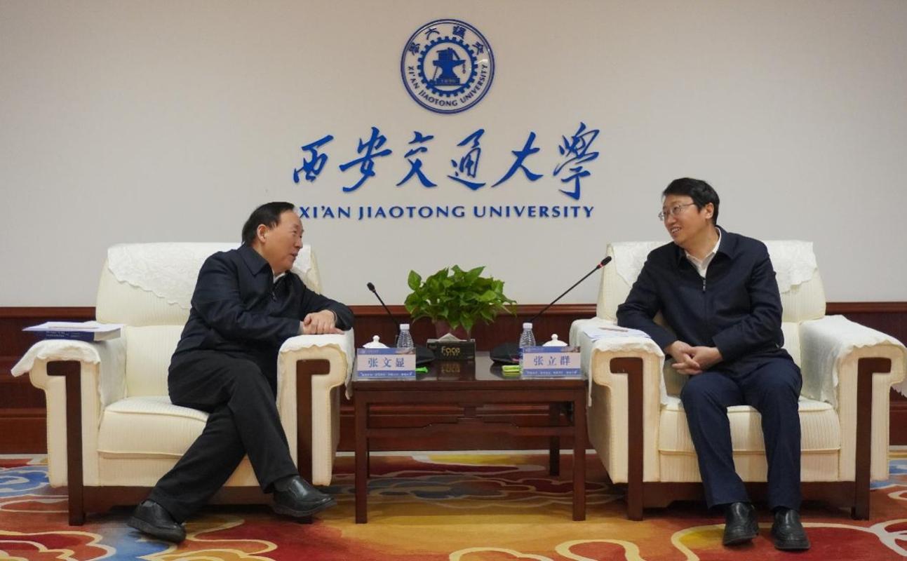 3月20日,中国法学会法学教育研究会会长、教育部社会科学委员会法学学部召集人、吉林大学哲学社会科学资深教授张文显一行来校交流。西安交大校长、中国工程院院士张立群会见张文显一行。校长助理单文华以及中国法学会法学教育研究会、法学院相关负责人参加会见。