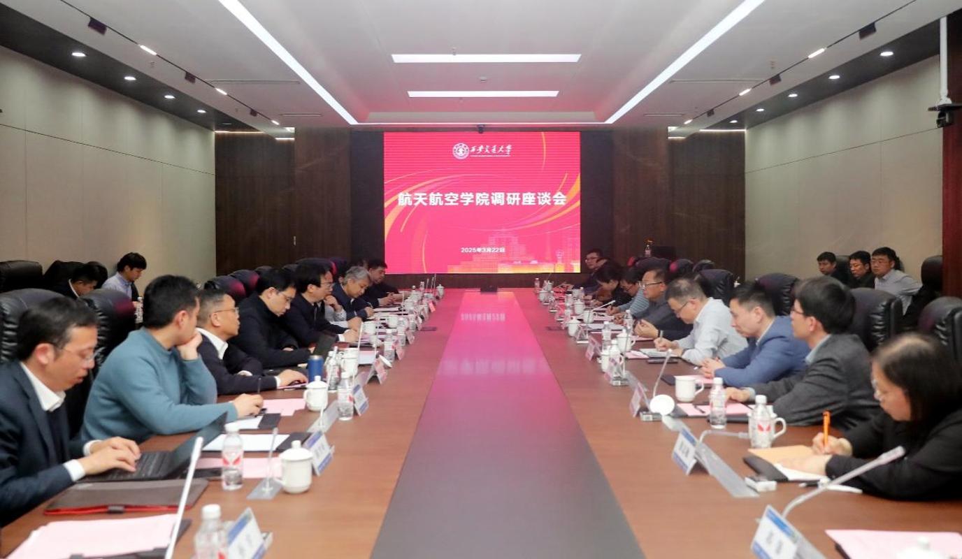 3月22日,西安交通大学校长、中国工程院院士张立群带队调研航天学院并召开座谈会。校党委常委成进、周远,航天学院党政班子成员、教师代表等参加。会议由航天学院党委书记张爱萍主持。