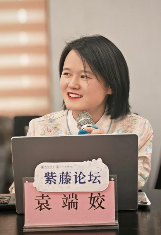 活动最后,王劲代表人文学院向袁端姣颁发“紫藤纪念铭牌”,袁端娇与师生合影留念。据悉,人文学院将持续推进“紫藤论坛”,邀请优秀校友分享丰富多样的经历经验,深化与校友合作,传承发扬人文精神。