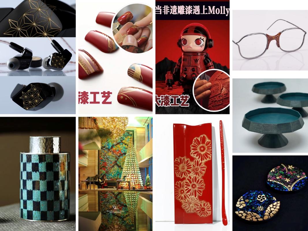 讲座伊始,袁端娇展示了秦岭深山采漆、古法制漆的场景,她以“8000年漆器文明”为脉络,阐释大漆防腐耐磨、天然环保的特性,并结合兵马俑彩绘、脱胎佛像等案例,展现了漆艺在中华文明中的璀璨印记。谈及创业历程,她坦言从交大毕业后回乡投身冷门非遗时曾饱受质疑,“母校赋予的思维格局让我坚信:传统不是束缚,而是创新的源泉”。十年间,她带领团队攻克生漆过敏、工艺复杂等难题,将传统技法与现代美学巧妙融合,开发出符合现代审美的日用漆器、大漆装置艺术、美甲漆等广受市场喜爱的产品,还联合毛戈平、泡泡玛特、华尔道夫、DITA Audio等品牌开发出大漆螺钿饰品、大漆Molly、大漆耳机等跨界产品,与西安交通大学联合研发的MAGIC FIT 020 模块化智能眼镜,凭借“大漆 ×3D 打印”跨界创新,荣获 2025 年德国 IF 设计大奖。“大漆是祖先留给我们的未来材料,它不应被锁在博物馆,而应融入当代人的日常。” 袁端姣为漆艺破圈之路写下生动注脚。