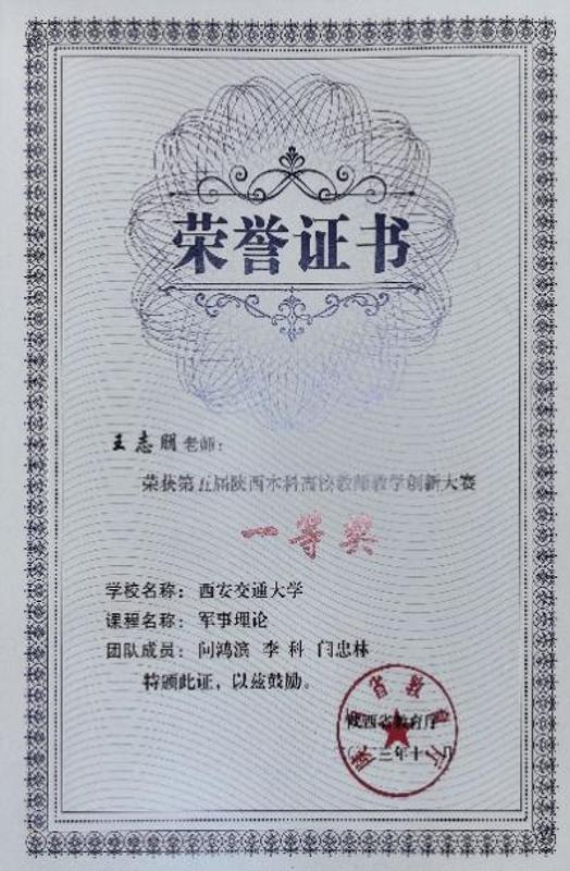 按照《普通高校军事课教学大纲》,加强“国防教育”必修课建设,打造精品内容,提升教学质量,改革教学方式,严格纪律管理。完善教学制度,细化教学手册,强化课程思政,为新一轮审核评估打下基础。与时俱进,线上线下相结合,探索混合式教学新模式,探索线上侧重知识要点讲授、线下强化学生自主学习能力培养相结合的混合式国防教学新模式。“国防教育”获批学校“智课建设项目”,使用知识图谱、AI助教赋能课堂教学。将“数字人”引入课堂教学,评析一周国际军事热点,受到学生喜爱。课程于2017年获评首批国家级一流课程,团队3名成员获西安交通大学“我最喜爱的老师”称号。