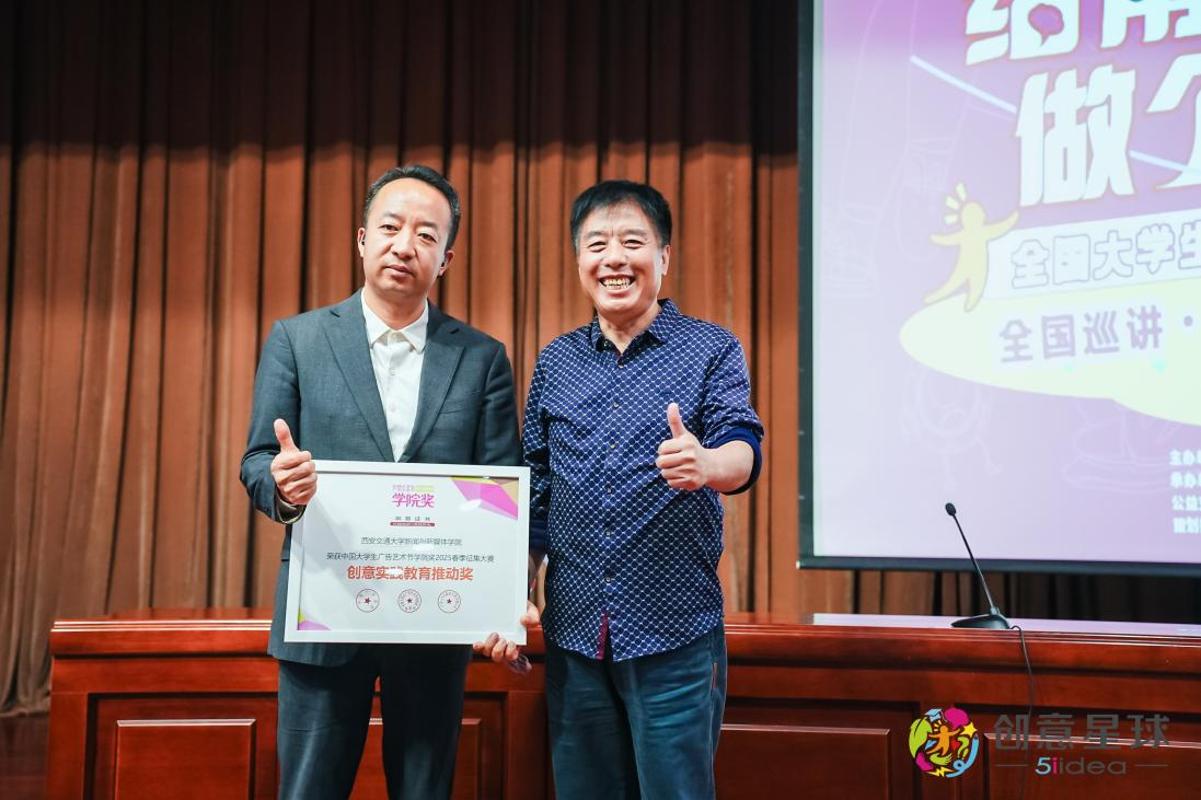 为表彰学院在创意教育领域的突出贡献,创意星球高校委员会秘书长张书元现场授予西安交通大学新闻与新媒体学院“创意实践教育推动奖”,副院长张宏邦代表学院领奖。这一荣誉肯定了学院在培养创新型人才、推动产教融合方面的示范作用。