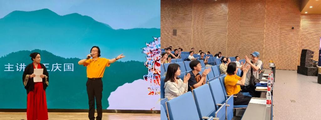 为营造高校美育氛围,提升学生审美感受力和鉴赏力,开发高校美育第二课堂,5月29日晚,由西安交大研究生院、人文学院主办的新港报告之美育高端论坛第二十三讲在新港报告厅举行。国家一级导演、陕西电视台资深电视文艺导演王庆国老师为交大师生带来名为“歌向西行·剧传薪火——原创西迁音乐剧《轨迹》的创作与表演”的专场论坛。近500名校内外师生齐聚现场,共同聆听这场艺术与精神交融的盛宴。陕西文学著名评论家王仲生、西安文理学院曹鸿教授、西安交通大学网络学院副院长陈灵受邀作为嘉宾出席论坛。