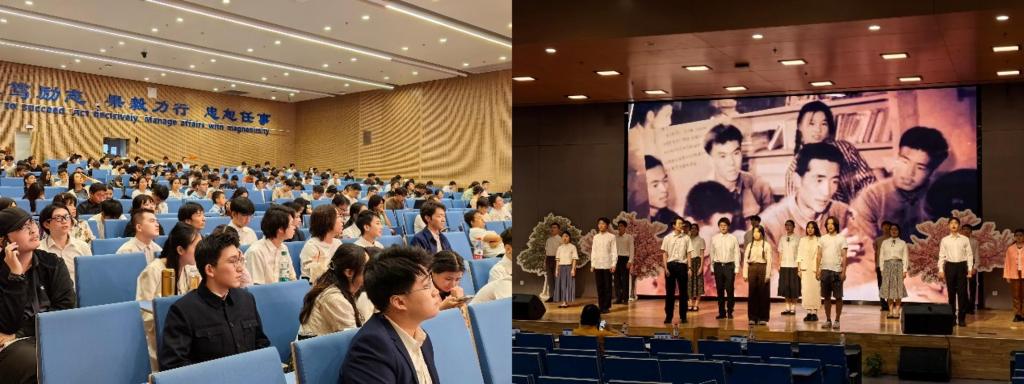 第一幕“上海火车站”中,西迁师生在黄浦江畔经历离别之痛与家人的不解,却毅然听从党的召唤,奔赴关中平原,以豪情万丈踏上祖国边疆的征程,胸怀天下、艰苦奋斗;