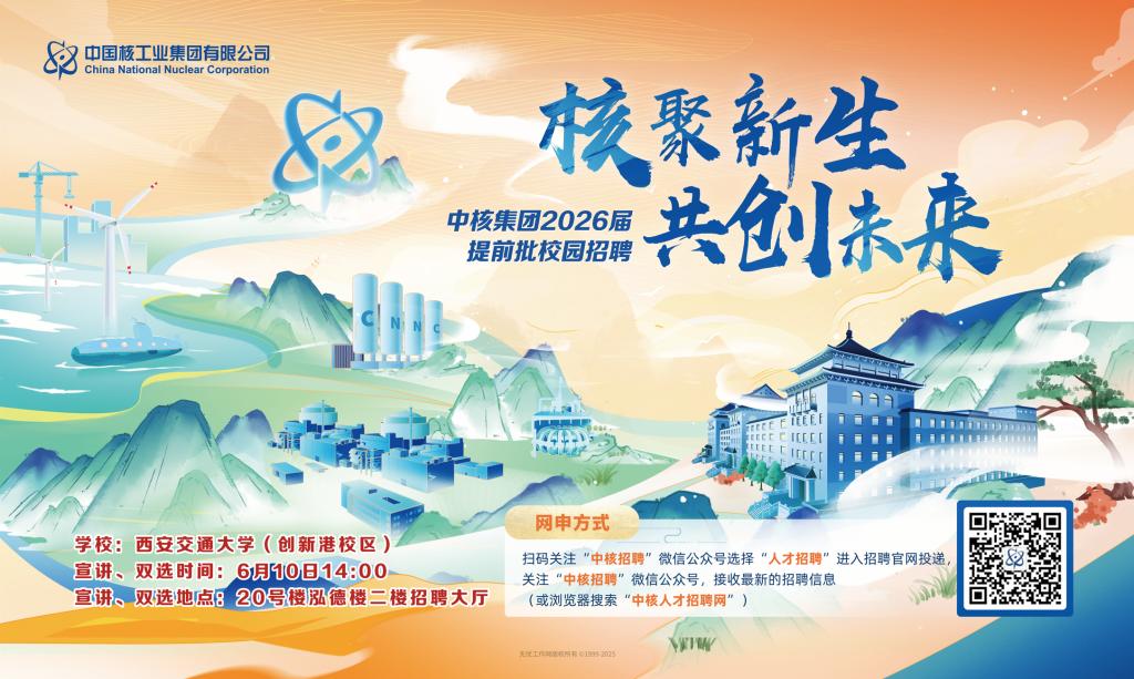 6月10日,以“核聚新生 共创未来”为主题的中核集团2026届提前批校园招聘活动在中国西部科技创新港举办,充分展现了学校促就业、稳就业的积极成效。