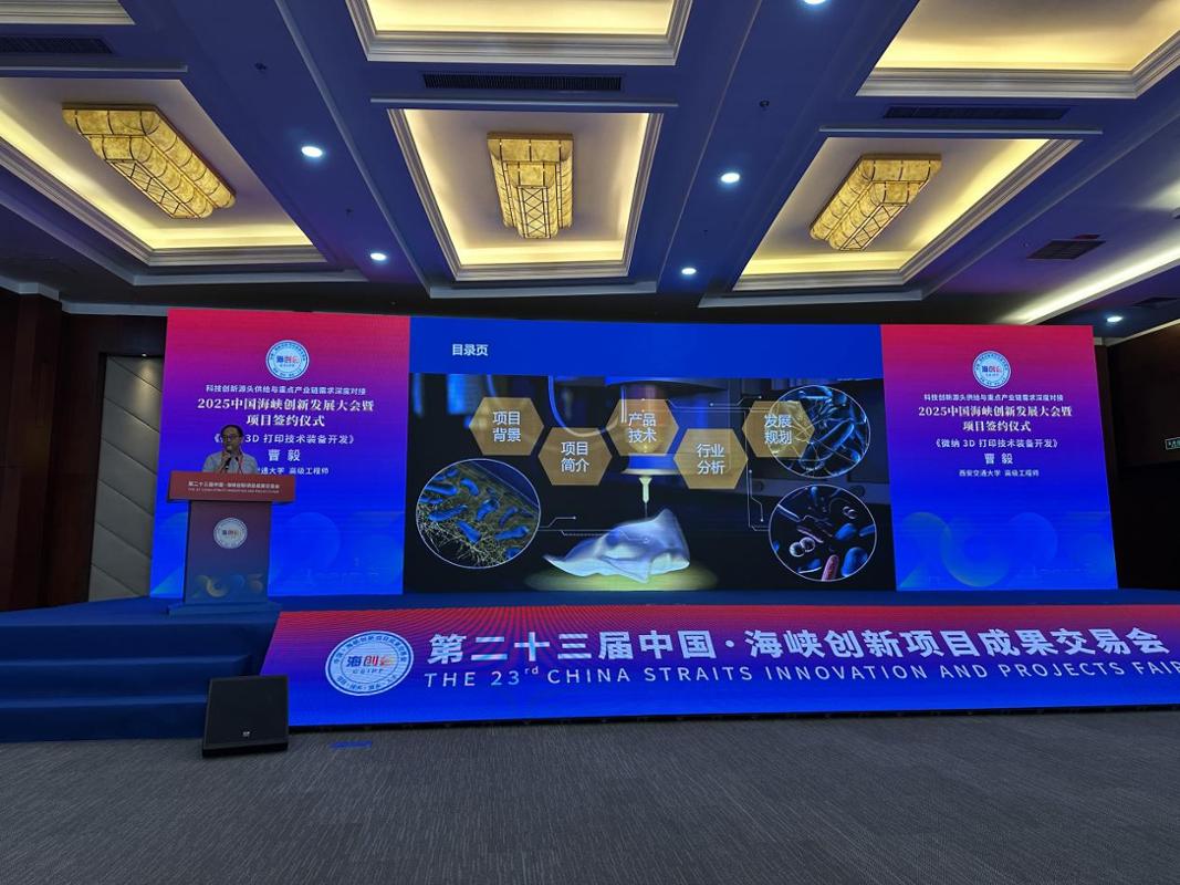 6月18日上午,代表团参加了2025中国海峡创新发展大会暨项目签约仪式。机械学院正高级工程师曹毅在会上进行了“微纳3D打印技术装备开发”项目路演,获得与会嘉宾关注。展会期间,机械学院通过多种形式展示了最新科研成果:“高压下水声辐射超结果换能器技术”“海洋高端技术与装备”“航空高性能复合材料智能制造装备与配套软件研制及产业化”“面向聚醚醚酮的高端增材制造装备与产业化”等项目通过实物展出、图文展板等进行了展示。