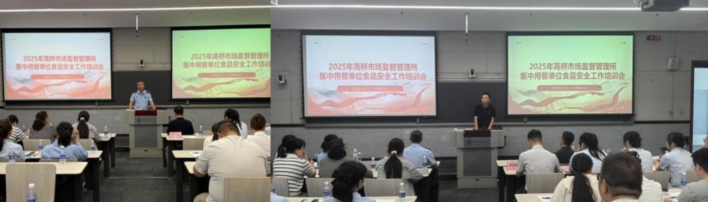 6月19日,高桥市场监督管理所、创新港综合管理服务中心联合组织的集中用餐单位食堂食品安全工作培训会在创新港召开,此次培训会旨在通过“讲和学”进一步提升餐饮服务单位管理能力。高桥辖区高校、中小幼集中用餐单位食品安全总监、食品安全员共计128人参会。