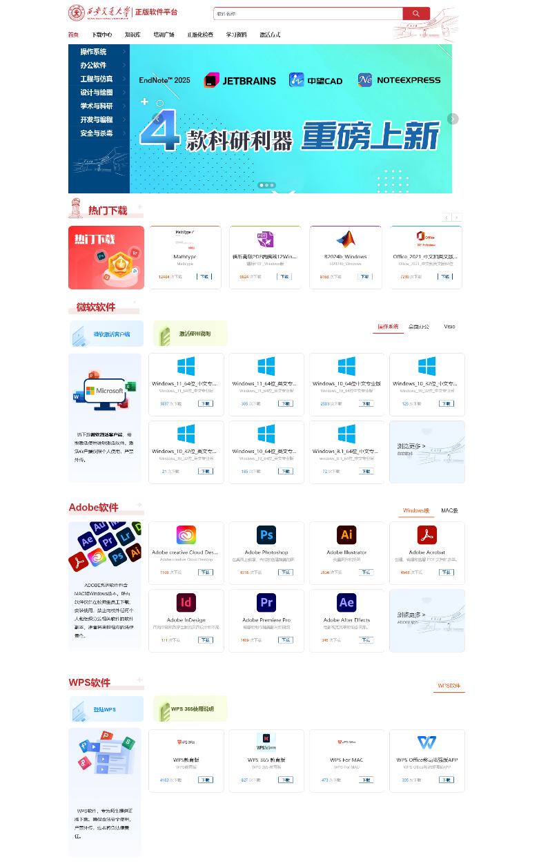 为积极响应教育部与国家版权局关于全面推进教育系统软件正版化工作的号召,紧密围绕师生科研、教学、学习的实际需求,西安交大网信中心持续推进校园正版软件资源扩容与服务优化,将软件正版化工作作为支撑学校高质量发展的重要一环,通过上新重磅科研工具、升级知识平台、深化技能培训、优化服务体验、布局国产生态,全方位提升正版软件服务的获得感与满意度。