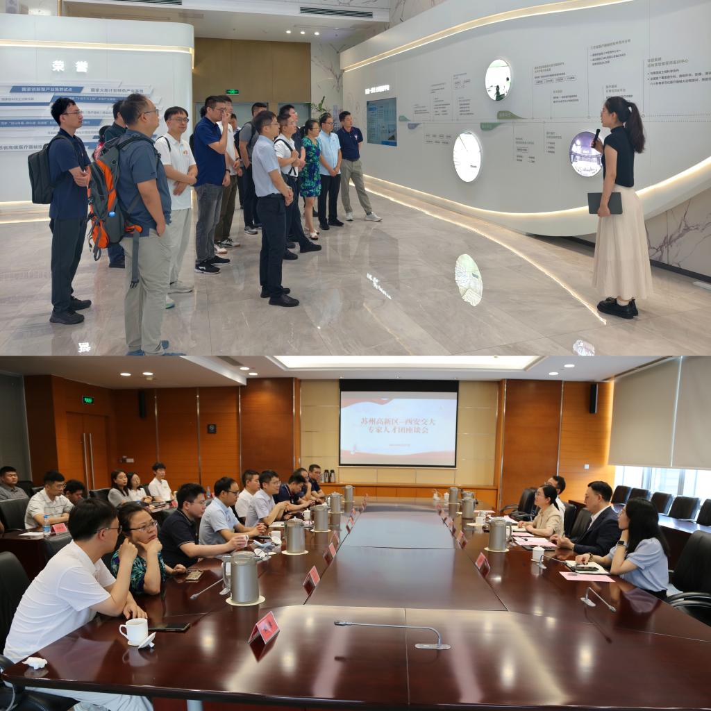 活动期间,一行还拜访了西安交大苏州研究院,与研究院、产教融合协同育人基地(苏州)及苏州实验室相关负责人座谈,就深化校企联聘人才合作、推动校地校企人才资源协同创新等工作进行了深入探讨。