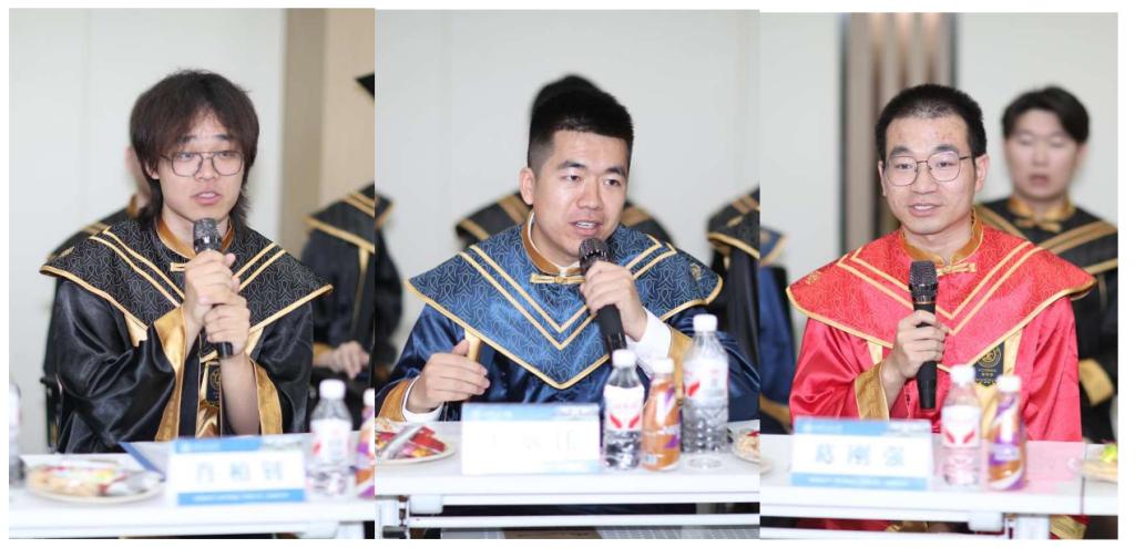 本科生代表肖柏钊、硕士生代表王承江、博士生代表葛刚强依次发言,分享了他们在学院学习、科研和生活的深刻感悟,表达了对母校、学院、老师的感恩之情以及对未来的憧憬和同窗们的祝福。