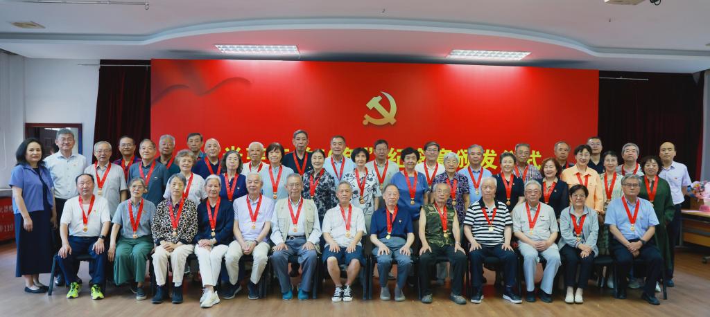 五十年党龄,五十载光荣。6月30日下午,西安交通大学离退休党委举行2025年“光荣在党50年”纪念章颁发仪式,向79名老党员颁发“光荣在党50年”纪念章。校党委副书记孙早、获颁纪念章的老党员、党委组织部负责同志及离退休处全体党员60余人出席仪式。