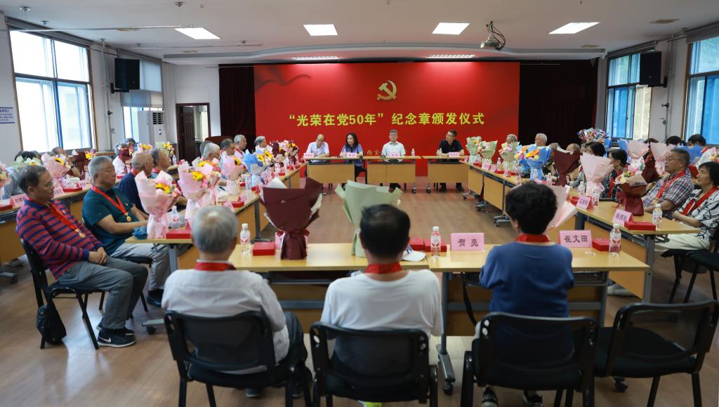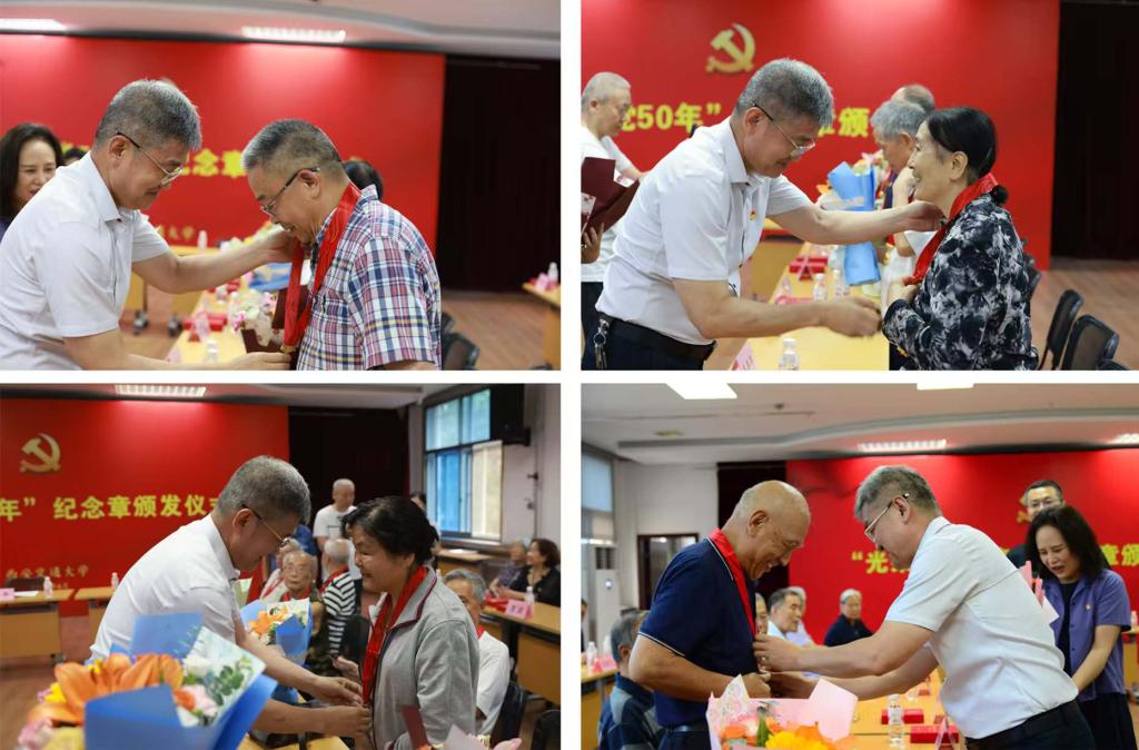 孙早表示,学校立足国际视野和国家战略谋划发展,落实教育科技人才一体推进战略部署,深化校企地协同创新,在重大项目、重大突破方面取得了标志性成果,形成了中国特色、世界一流大学与区域创新体系建设服务地方高质量发展协同推进、相互赋能、共同发展的新格局,正在为实现高水平科技自立自强、建设世界科技强国贡献交大力量。孙早表示,学校党委正在开展深入贯彻中央八项规定精神学习教育,离退休党员在学习教育中要做在党言党、遵规守纪的表率,以身作则,传承优良作风,同时做好宣传员,抓好家风建设,教育子女亲属及身边人严守纪律,在反腐倡廉建设中发挥积极作用。孙早表示,老党员与党同行50年,是国家、学校发展的亲历者、参与者和见证者,为党和国家事业、为学校发展建设作出了重要贡献。学校将继续加强力量做好对离退休老同志的关心关爱工作,坚持从政治上谋划、推进离退休工作,加强统筹协调、强化工作责任、健全服务机制,汇聚工作合力,不断满足老同志对美好生活的向往需求。希望离退休老同志一如既往关心支持交大发展,讲好党的故事,传播好党的声音,展示好交大形象,为学校各项事业发展加油鼓劲、建言献策。