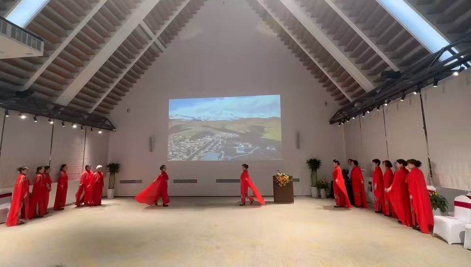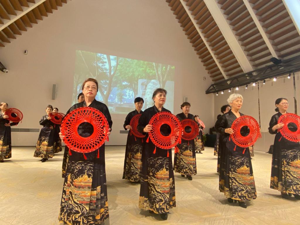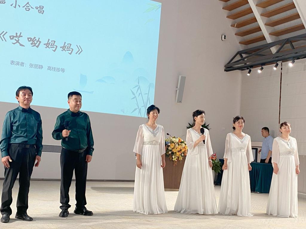 为了加强与企业的深度文化交流,本次研学活动还设计了文艺展演环节,精彩表演点亮了整个园区。瑜伽团的成员们刚柔并济,一招一式舒展自如,在呼吸吐纳间展现生命的从容与力量,将东方哲学的静谧之美融入每一个动作;模特队的学员们身着华服,步态优雅,举手投足间尽显自信风采。学员们以岁月沉淀的从容气质与舞台绽放的艺术光芒交相辉映,赢得现场观众经久不息的掌声。这场精彩演出的背后,是全体学员在持续高温下的辛勤付出——排练厅里,汗水浸透的练功服见证着他们对艺术的执着追求;炎炎夏日中,反复打磨的每个细节彰显着西安交大老年大学高标准、严要求的办学理念。